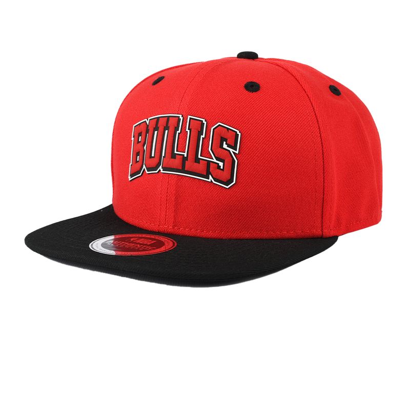 NBA SILICONE WORDMARK PATCH FITTED FLAT CAP - RED1, CHICAGO BULLS