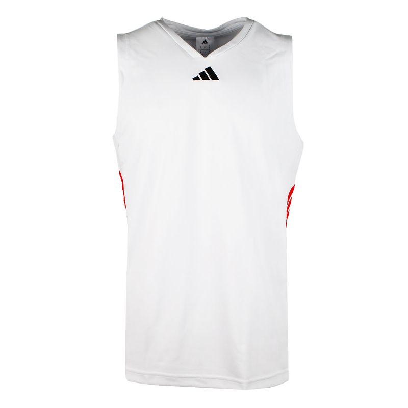 La comodidad clásica entra a la cancha. Esta musculosa de básquet de adidas luce amplias aberturas para los brazos y escote en V para una total libertad de movimiento. Un logo de las 3 Barras en el pecho y las 3 Tiras en el cuerpo lateral completan el aspecto icónico. Este producto está fabricado con 100 % de materiales reciclados. Al reutilizar materiales reciclados disminuimos los residuos, nuestra dependencia de los recursos finitos y la huella que generan los productos que fabricamos.